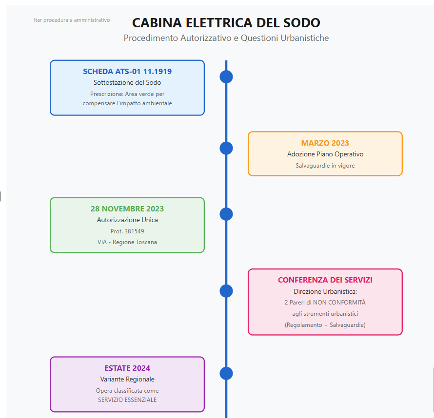 “In merito alla realizzazione della cabina elettrica primaria del Sodo, in risposta al primo quesito: no, la sottostazione del Sodo non è a rischio, poiché le opere sono state rese compatibili nel corso della Conferenza dei Servizi regionale. Non vi è quindi alcun timore riguardo all’eventuale realizzazione della sottoattraversamento del Sodo.