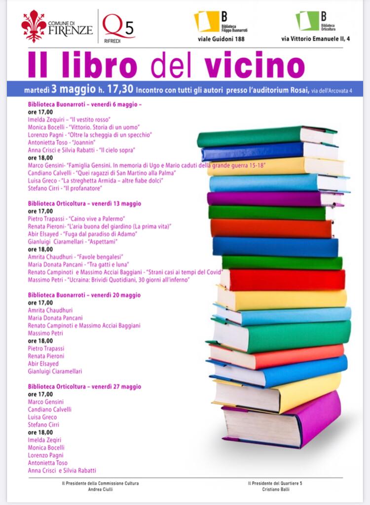 LA PRESENTAZIONE della iniziativa martedì 3 maggio h. 17,30 Incontro con tutti gli autori presso l’auditorium Rosai, via dell’Arcovata 4