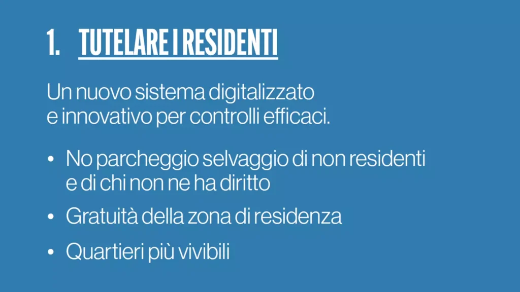 Grazie al nuovo sistema digitalizzato, i residenti potranno parcheggiare gratuitamente nella loro zona e accedere a tariffe ridotte per una altra zona. Quartieri più tranquilli, meno traffico e niente più parcheggi selvaggi.
