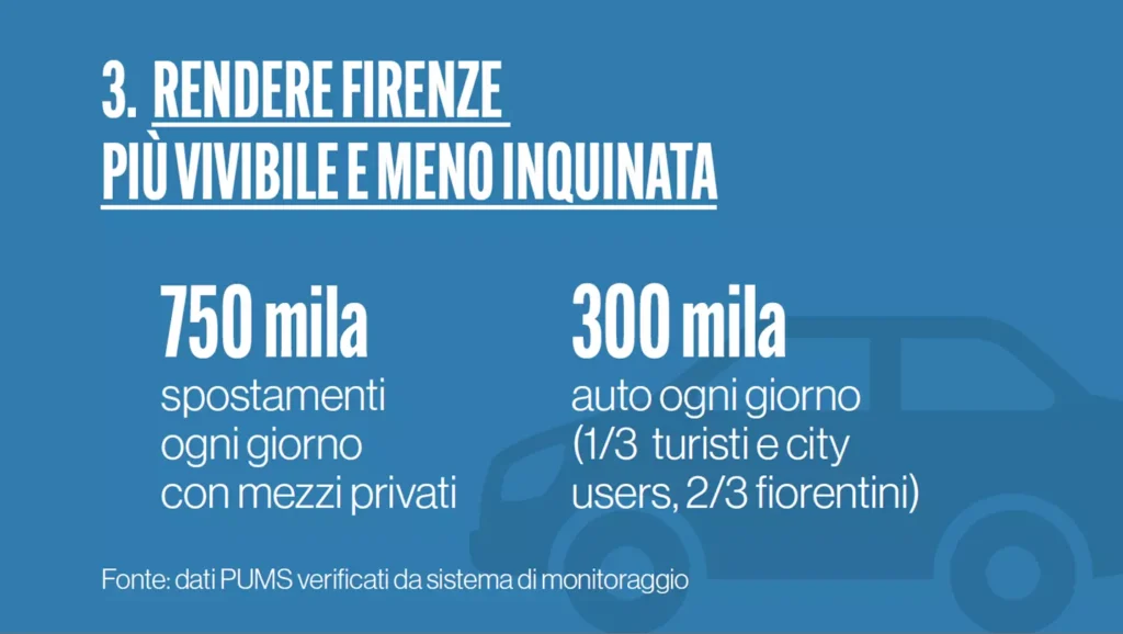 Nel Comune di Firenze i cittadini abitanti sono 360.000 e hanno 205.000 automobili e 75.000 scooter di proprietà. A questri si aggiungono pensolari e lavoratori. Una onda di veicoli non più sostenibile.