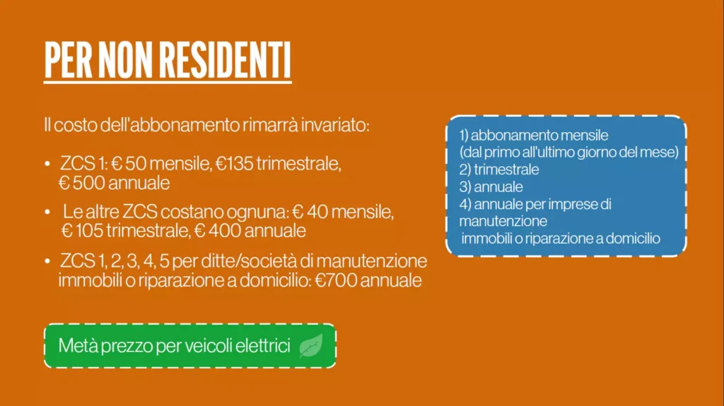 - Altre ZCS: €40 mensile, €105 trimestrale, €400 annuale.