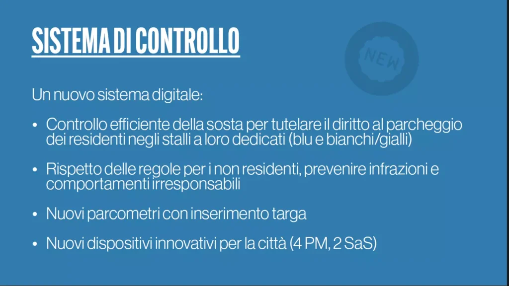 - Installazione di nuovi parcometri con inserimento della targa.