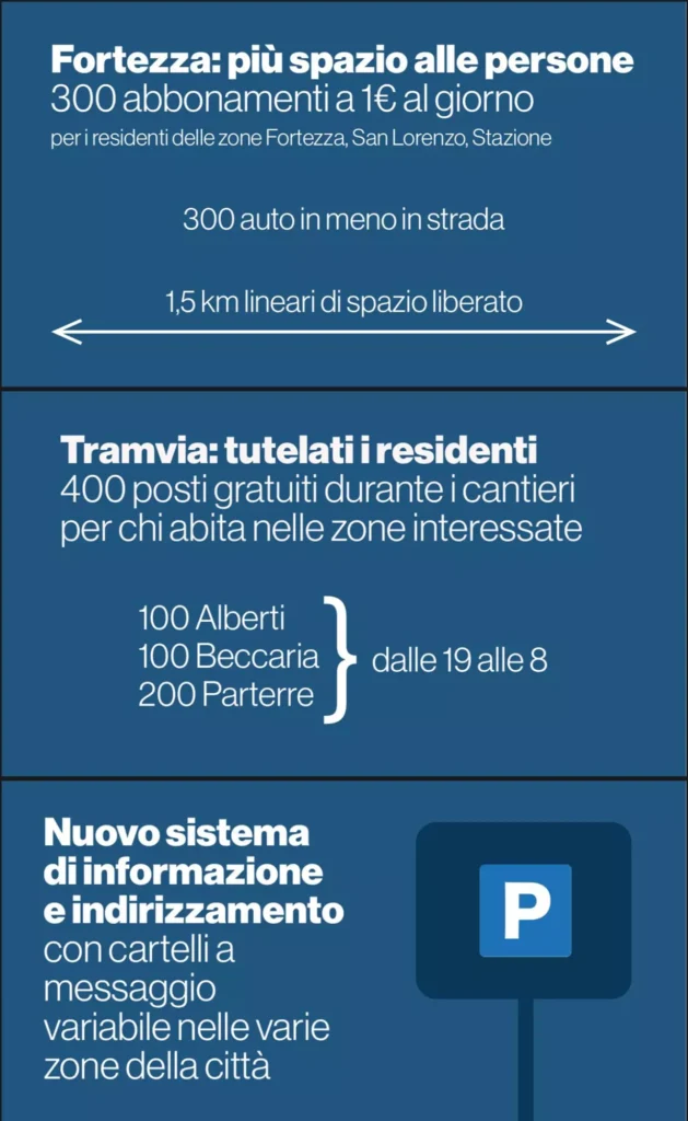 Per i residenti delle zone Fortezza, San Lorenzo e Stazione, saranno disponibili 300 abbonamenti a tariffa ridotta presso il parcheggio della Fortezza. Il costo sarà di 1 euro al giorno per l’utilizzo h24. I posti saranno riservati ai residenti nel raggio di 15 minuti a piedi dal parcheggio.