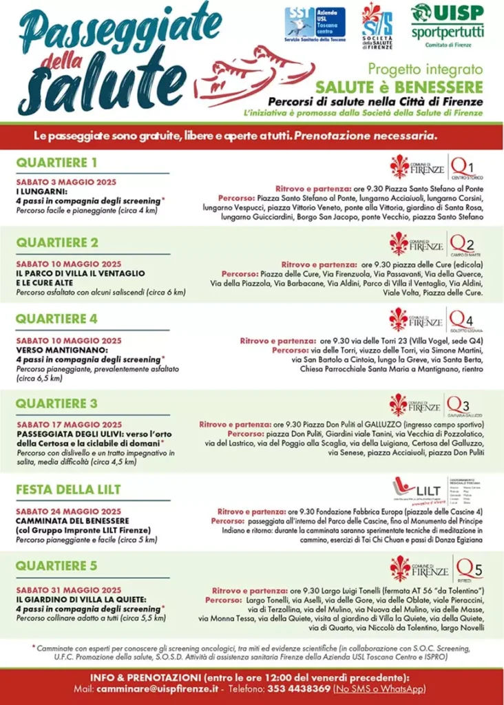 Camminata del Benessere con il Gruppo Impronte LILT Firenze. Ritrovo ore 9:30 in piazzale delle Cascine 4. Percorso pianeggiante di 5 km con attività finali 🧘♀️