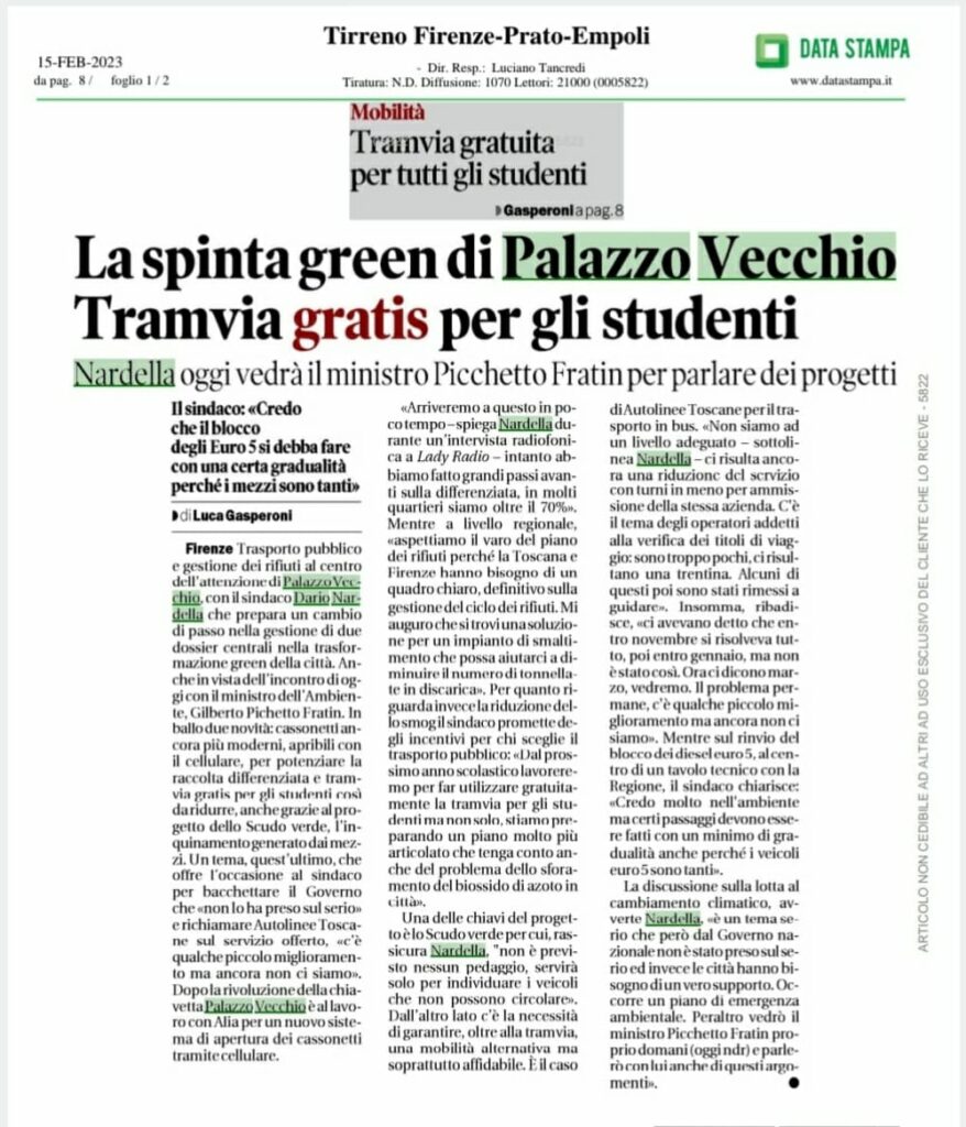 Palazzo Vecchio verso il trasporto Pubblico gratuito per gli Studenti