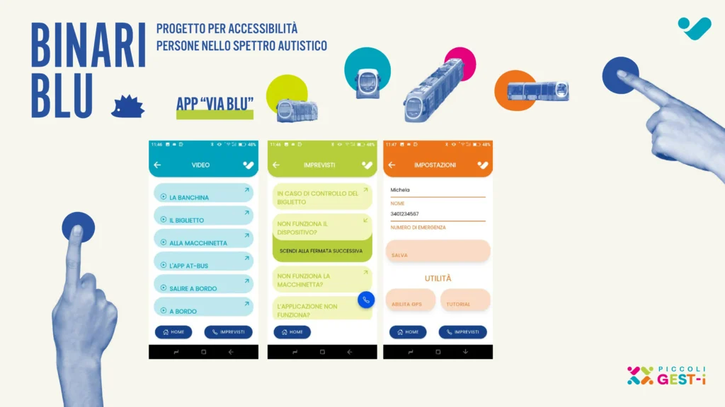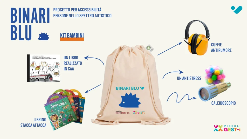 L’app accompagna l’utente in ogni fase del viaggio: dalla pianificazione del percorso all’arrivo a destinazione. Lo fa attraverso storie sociali sequenziali, anticipazioni sensoriali su rumori e affollamento, mappe essenziali e icone pensate per l’accessibilità cognitiva. Per i bambini è disponibile anche un kit fisico con cuffie antirumore, un antistress, un caleidoscopio e materiali visivi in CAA. Alle fermate saranno affissi adesivi per facilitare il riconoscimento delle macchinette dei biglietti.