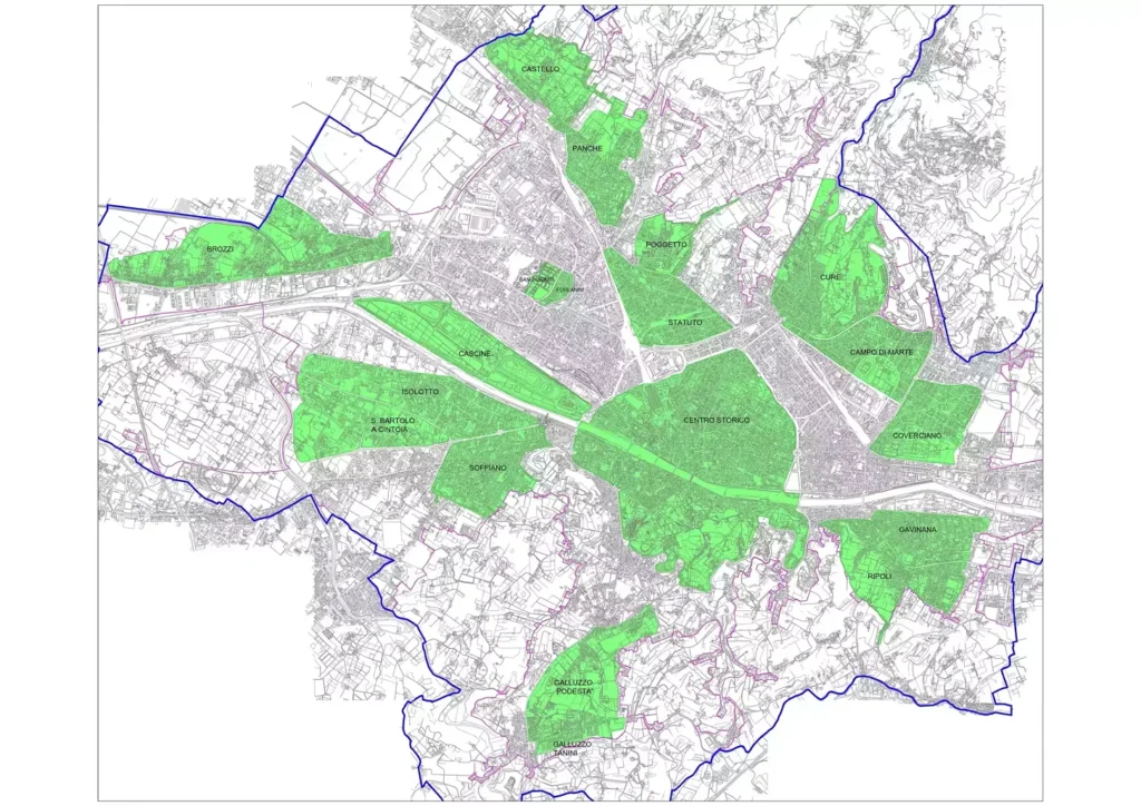 Una piantina delle Zone 30 km/h a Firenze nel Aprile 2025